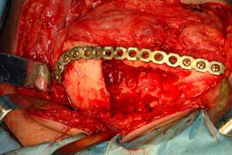 ます。あごの骨を部分的に離断、切除した場合にはチタン製プレートによる固定や骨移植を行い