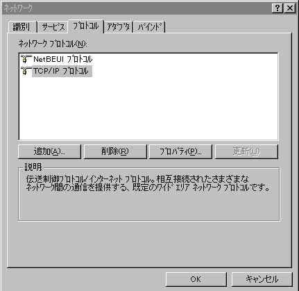 「TCP/IPプロトコル」を選択し、プロパティーをクリックする。