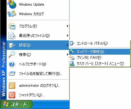 スタートメニューから「設定」→「ネットワーク接続」を選択する。