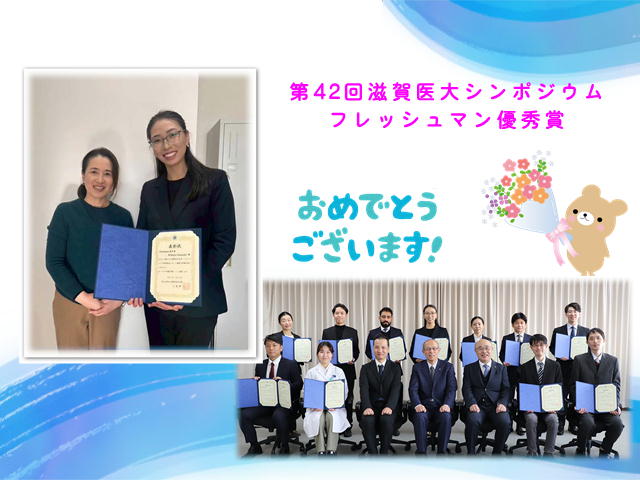 第38回滋賀医科大学シンポジウムで西清人先生が優秀賞、佐野さんがフレッシャーズ賞を受賞しました。