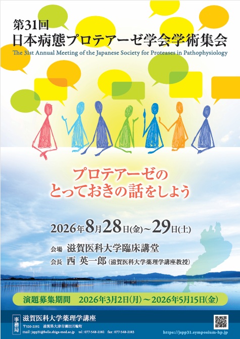 2026年8月28日,29日、滋賀医科大学にて第31回日本病態プロテアーゼ学会学術集会を開催いたします。