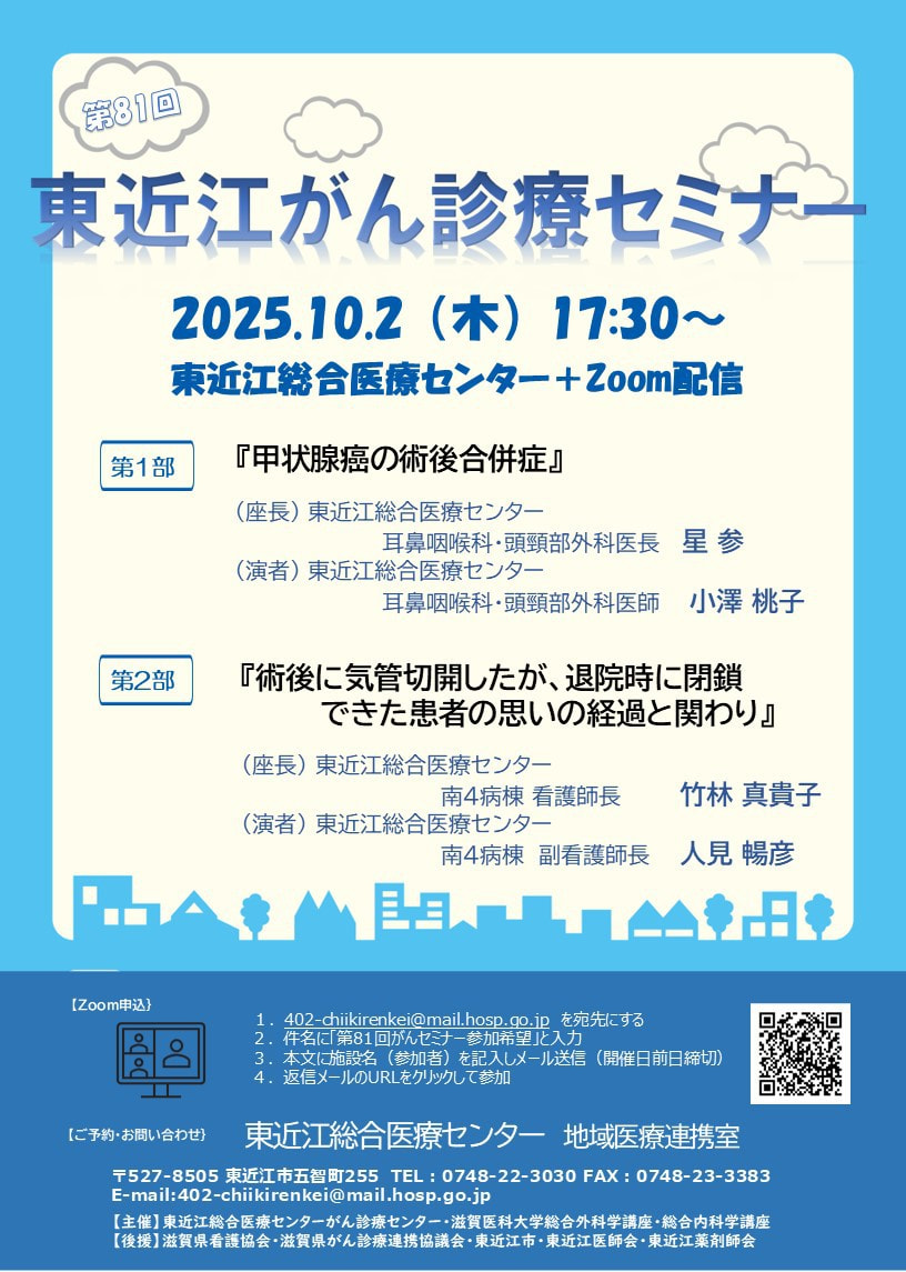 次回『第81回東近江がん診療セミナー』は10/2(木)の開催予定(内容未定)です。