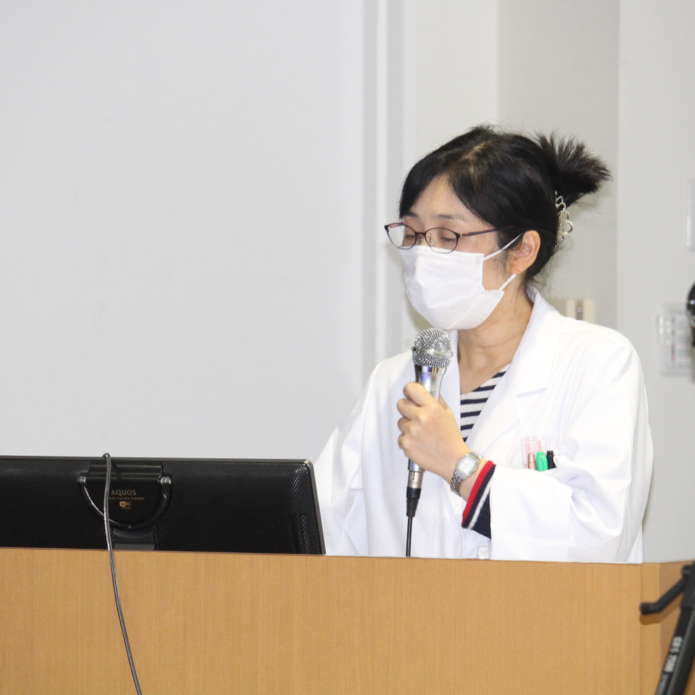 第2部では、実際に当院で放射線治療を受ける患者さんに対し、安心して治療を受けてもらうため、パンフレットをつかった治療の流れや注意事項の説明、副作用や生活指導など、外来で看護師が行っていることについて國渓師長から発表がありました。つづいて、緩和照射をおこなった患者さんの症例について発表がありました。骨転移があり、痛みが強かった患者さんは、放射線治療によって症状が軽減・緩和されましたが、その効果を発揮するためには、看護師による丁寧な症状評価と、患者さんやご家族へに寄り添いが不可欠であったと締めくくられました。