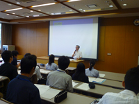 続いて「インフルエンザウイルスとヒトとの関係」と題し、病理学講座(疾患制御病理学)の小笠原教授から講義がありました。講義後は生徒から専門的な質問が多く寄せられ、小笠原教授の丁寧な解説を受け更に理解を深めていました。