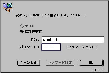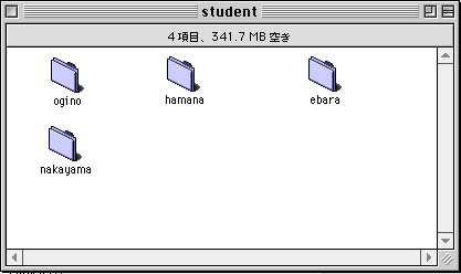 - 情報センターの学生実習用MacのうちIIciとQuadra610からアクセスする。他の教室の学内LANに接続されているマッキントッシュからでもアクセス可能である。