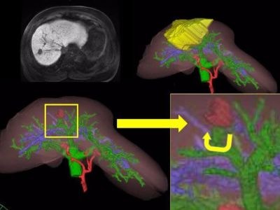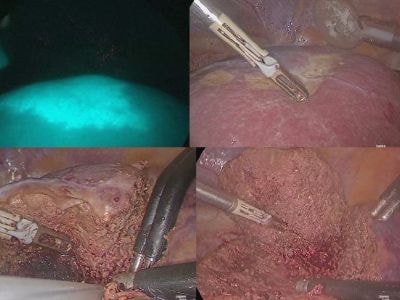 2016年4月から、多くの腹腔鏡下肝切除術は保険適応となっています。腹腔鏡手術の良い点は、お腹のキズが小さいため、手術後の回復が早いところです。しかし、従来のお腹を大きく開く手術にくらべて、手術の難易度が高いため、認定施設でのみ手術が認められています。当院では、日本内視鏡外科学会の技術認定医(肝臓)が中心となって、最新の画像処理技術を用い(シミュレーション・ナビゲーション)、腹腔鏡での手術を行っています。