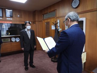 2022年12月22日(木)に、滋賀医科大学開学50周年「三方よし」未来募金に多大なご支援をいただいた本学卒業生の永田様、金子様に、本学から感謝の意を表するため感謝状の贈呈式を行いました。