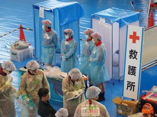 本学附属病院は平成29年4月より滋賀県から原子力災害拠点病院の指定を受けており、同拠点病院としては初めての訓練参加となり、本学からは、医師2名(救急・集中治療部:田畑、加藤)、看護師1名(2C:坪内)、診療放射線技師2名(放射線部:吉越、東前)、業務調整員1名(施設課:飯島)が、主にスクリーニング、除染、救護所の運営及び住民説明相談を大津日赤病院チームと連携して行いました。